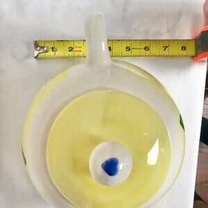 How adorable is this?! This lovely ceramic teapot is in white with yellow paint on lid and on each side, along with paintings of cute bluebirds and a green birdhouse. Has company mark on the bottom and is dated 1989. Also there is a red mark on the bottom as well. Otherwise, no other blemishes seen. See pictures for details and measurements. Bundle with other items in my closet for best deal!