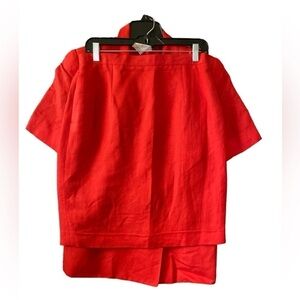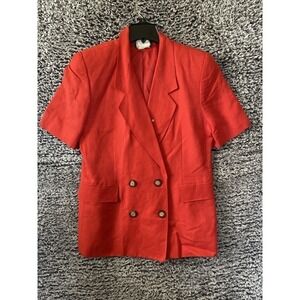 VTG Harve' Benard Collection Pant Suit Women 12 Red Linen Double Breast Taper