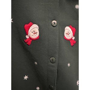 VTG Hastings & Smith size Petite M green fleece lined button appliqué cardigan