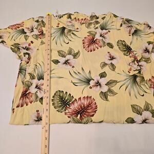 VTG Hawaiian Hibiscus Monstera Print Midi Dress 2XL Butter Yellow Ruffle Hem USA