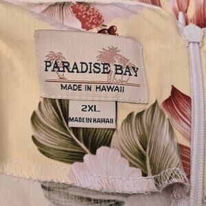 Capture the tropical charm in this vintage Royal Hawaiian Creations midi dress in size 2XL, featuring a vibrant hibiscus and monstera leaf print on soft light yellow rayon.