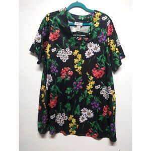 VTG Hawaiian blouse top 1X Black Floral Multicolor JoRo Fashions stretch short sleeve EUC
