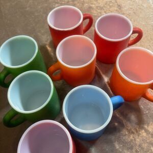 Characteristics: The mugs have a distinct "orange peel" textured finish and are painted in various colors.