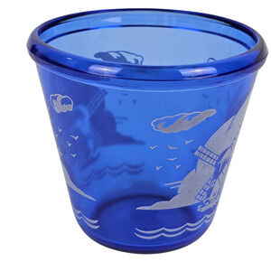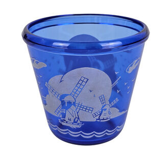 VTG Hazel Atlas cobalt blue glass ice bucket windmills 4.25