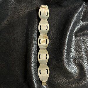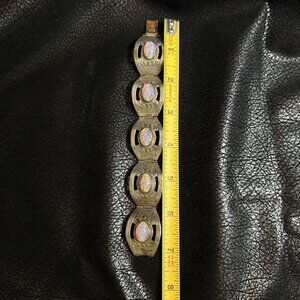 VTG Hecho En Mexico Sterling 925 Glass Opal Cabochon Panel Link Bracelet Sz 7”