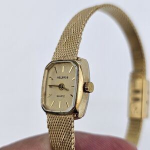 VTG Helbros Women's Watch 15MM Gold Dial Gold Milanese Band 5.5" New Battery