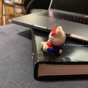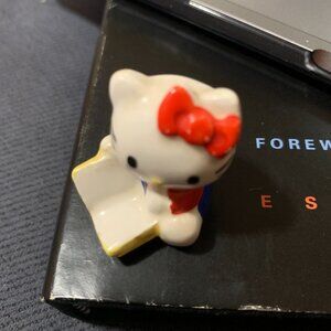 Hello Kitty reading a book ceramic figurine measuring about 1/5 inches tall. Purchases in the 90's from a Sanrio Surprises store in my local shopping mall. Great vintage condition, see photos and let me know if you have any questions.