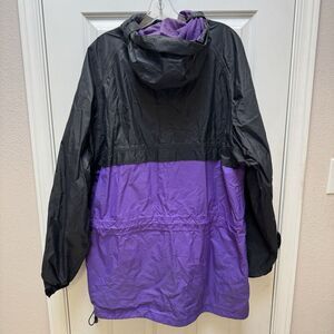 VTG Helly Hansen Men’s Packable Multi-Pocket Black Purple Rain Jacket Sz L