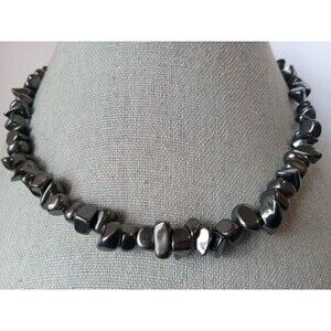 VTG Hematite Chip Necklace with Ornate Irregular Hook Clasp (AS IS)