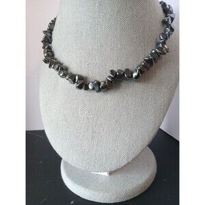 This is a VTG Hematite Chip Necklace with Ornate Irregular Hook Clasp (AS IS).