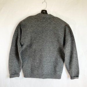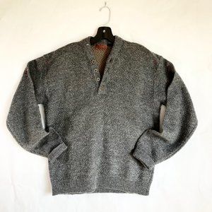 VTG Henry Grethel Herringbone Knit Wool Blend Relax Fit Grey Pullover M 4-Button