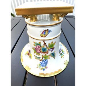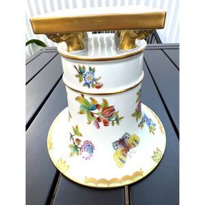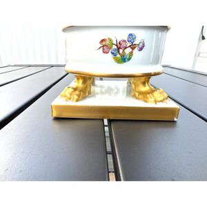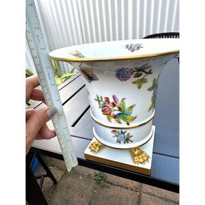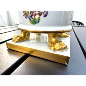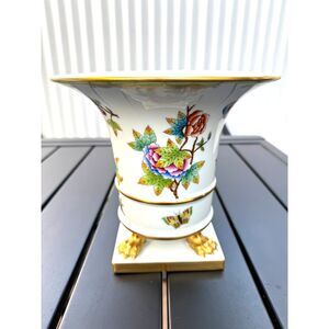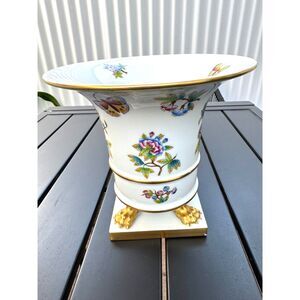 Vintage Herend Queen Victoria (Green Border) Floral Butterfly Claw Footed Urn Vase Size 7.5"H 6401 | VBO