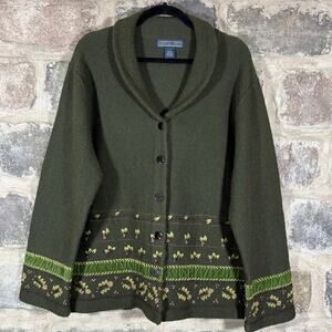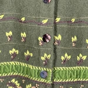 VTG Herman Geist Cardigan Sweater Woman's Large Green Knit Wool Embroidered