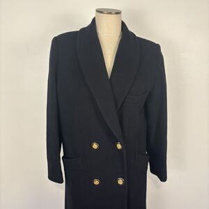 VTG Herman Kay Womens 10P Wool Blend Double Breasted Winter Black Coat Peacoat