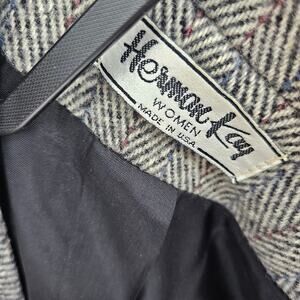 Vintage Herman Kay Wool Herringbone Twill Double Breasted Blazer Coat Academia