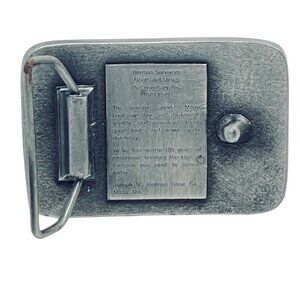 This vintage Herman Survivors belt buckle features a detailed mountain and forest design, combining rugged appeal with durable craftsmanship for a timeless accessory.