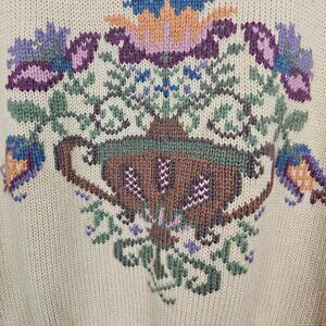 VTG Herman Geist Women's SM Sweater Embroidered Floral Mustard Wool Warm Grannycore