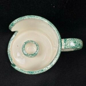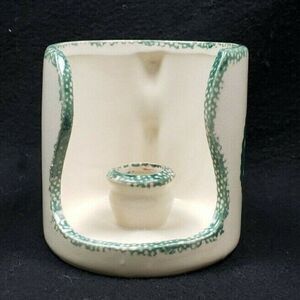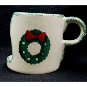 Vintage Hermitage Pottery Loomco Ceramic Christmas Chamber Lamp Candle Holder. The Chamber Lamp is off white with a green sponge paint border and a Christmas wreath design. It is approximately 3.75" high x 3.5" wide x 5.5" deep including the handle. The Chamber Lamp is in wonderful condition. The original sticker on bottom has been partially removed. Please see photos! Gift Mug Cottagecore Taper Rustic 90s 1990s Holiday Retro