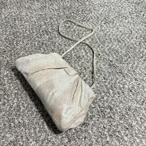VTG Hobo International Shoulder Bag Frame Snake Skin Leather Print Beige Retro New