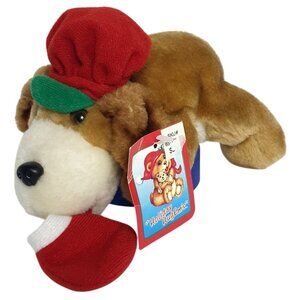 VTG Holiday HugEms Santa Basset Hound Dog 5.5" Plush Santa Hat & Stocking NWT
