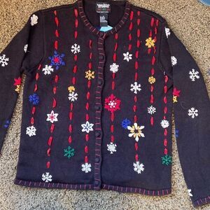VTG Holiday Party Snow Flakes Snowmen Cardigan Ugly Christmas Sweater by Segue H