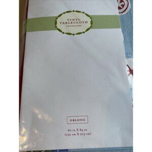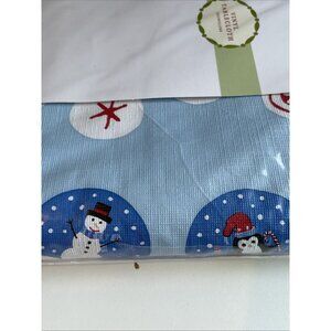 VTG Holiday Snowglobe Vinyl Tablecloth 60 X 84" Blue Snowman Santa Penguin NEW