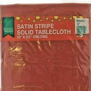 VTG Holiday Wishes Tablecloth Christmas Red Satin Stripe 60 X 102 Oblong NWT