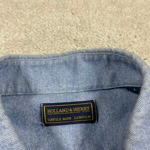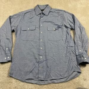 VTG Holland & Sherry Shirt Mens L Blue Button Up 90s Work Double Pocket Menswear