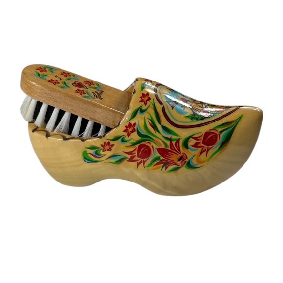 VTG Holland Wall Mountable Hand-Painted Wooden Clog & Shoe Brush 6.5" Length