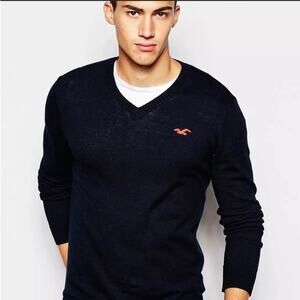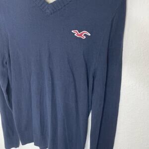 VTG Hollister Classic Navy Blue Knitted Sweater W/Icon Logo unisex Y2K 2000s