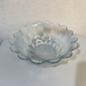 The VTG Holmegaard Sidse Werner Glass Flower Bowl is a vintage piece of Scandinavian art glass from Denmark. This clear glass bowl features a delicate flower petal pattern designed by artist Sidse Werner, making it a unique and eye-catching addition to any décor. With a mid-century modern style and a diameter of 8 inches, this bowl is perfect for all occasions and is sure to add a touch of elegance to any space.