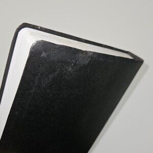 Faux leather cover shows noticeable wear along edges of cover, most noticeably along front and bottom edge of back cover, as shown in photos.