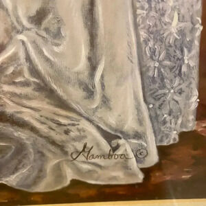 Vintage Home And Garden Party Victorian Wedding Theme Gold Frame 18”x22” Signed . Good condition. 13dec23. Gcts