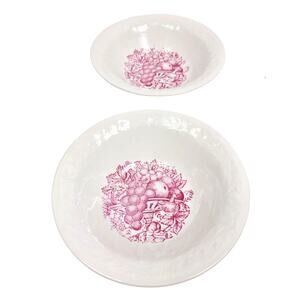 Set of 4 matching Homer Laughlin Bowls Harvest Red Fruit Pattern are in barely used,excellent like new condition.