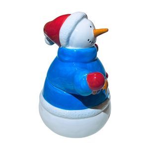 VTG Homespun Holiday Collection Winter Christmas Snowman 10 Cookie Jar w/Box.