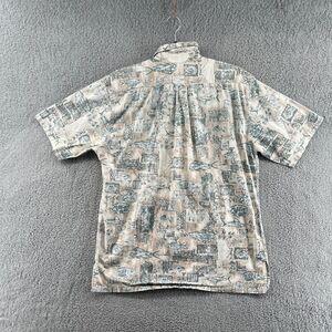VTG Hook & Tackle Men's Medium Fish Pattern Button Camp Shirt Tan Green Fishing