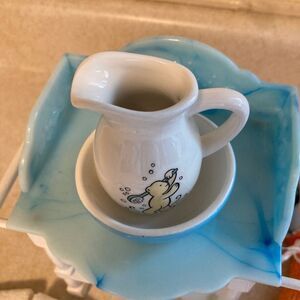 Bathrobe, Towels, Wash Basin (the wash basin has a little bit of paint chipped, please see pictures)