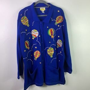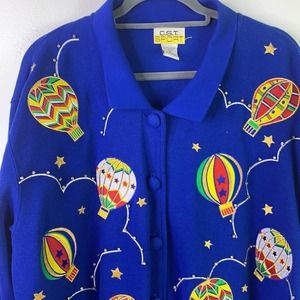 VTG Hot Air Balloon Embellished Cardigan Womens 1X