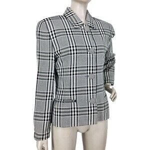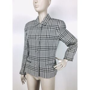 VTG Houndstooth Monochrome Plaid Button-Down Business Jacket Paul Stanley Size 6