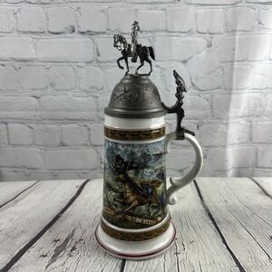 VTG House of Goebel Beer Stein Military Scene Horse Eagle Pewter Lid &Lithophane