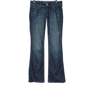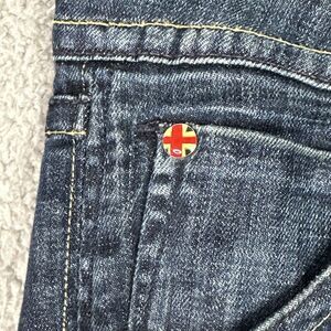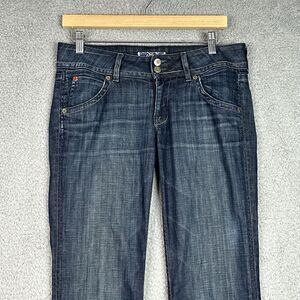 VTG Hudson Womens Jeans Size 28 (32x33.5) Blue Flared Leg Flap Back Pockets