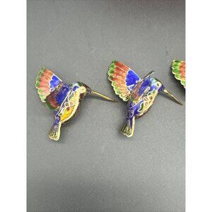VTG Hummingbird Tree Ornaments Cloisonné Enamel Metal Original Box Set Of 4