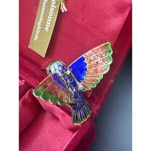 This set of 4 VTG Hummingbird Tree Ornaments is a vintage collection by Dillard's, featuring cloisonné enamel metal ornaments in a multicolor design. The small-sized ornaments are perfect for all occasions and are shaped like birds, specifically hummingbirds. They come in the original box and are part of the ornaments collection, making them a festive addition to any Christmas tree. The metallic features of the brass and enamel materials add a touch of glamour to this charming set.