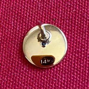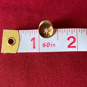 This is a vintage 14K gold tie tac by C.D. Foster (aka cdf or cfd) with, according to the box, a genuine diamond surrounded by a star. This item has been warehoused for many years following a store closure, with original price sticker still in box, and would date to the 1980s/1990s. 14K stamp shown in photo 4, measurement photo 5. Shows some tarnish. Pin has wear & looks a tad bent. Box condition, last 2 photos, sticker on bottom indicates stock#136.