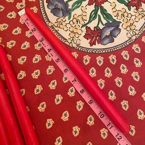 Here are 5, 12-inch, red dinner taper candles which I'm *99.9%* sure are Carolina candles (Carolina Soap & Candle Makers Company). These came from a large box of candles, several of which were wrapped and listed earlier, and findable in my closet. Several more were unwrapped, which I am now posting. The candles have never been used, but the color is no longer pristine due to the way they were stored as mentioned, and also shown in photos. All those still packaged/boxed were from the late-1970s/early-1980s, for reference.