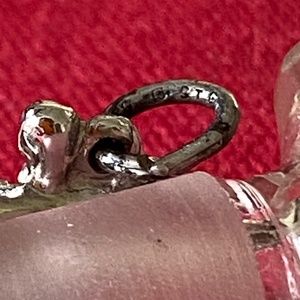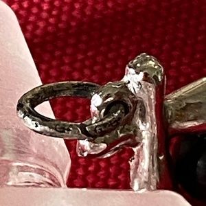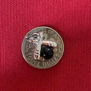 Here is a vintage sterling silver charm for a bowler by the old R.L. Griffith Company, featuring two crossed bowling pins and a black bowling ball. This charm would be 39+ years old, as Griffith shuttered in 1982. Photos 2-4 show Griffith hallmark ("G" with an arrow through it) and sterling stamp (STG) all around the jump ring. Approximate measurements/size shown in photos 5-7. Charm shown from multiple angles, in excellent condition, except the jump ring is a bit tarnished/worn now.