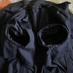 This is what I *believe* to be one of London Fog's "Maincoats," circa mid-1960s. It's in VGUC, with just 2 small flaws shown in photos 14-15. It has no holes, tears or stains. It no longer has the lining that zipped in/out, so again, this is just the shell of the coat. Please review all photos. The color is Black, and the size is 46R. Features a single-breasted fly front, rear vent, stand-up collar, 2 exterior pockets & 2 interior pockets, all functional.
