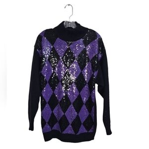 VTG I.B. Diffusion silk rabbit hair wool purple & black sequin mock neck Medium