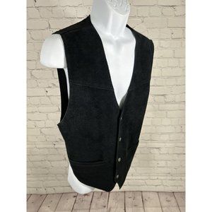 VTG IN PRIVATE Solid Black Genuine Leather Snap Down V Neck Western Vest Men’s L