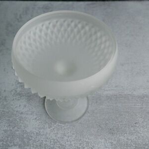 VTG INDIANA DIAMOND POINT GLASS, FROSTED PEDESTAL COMPOTE CANDY DISH